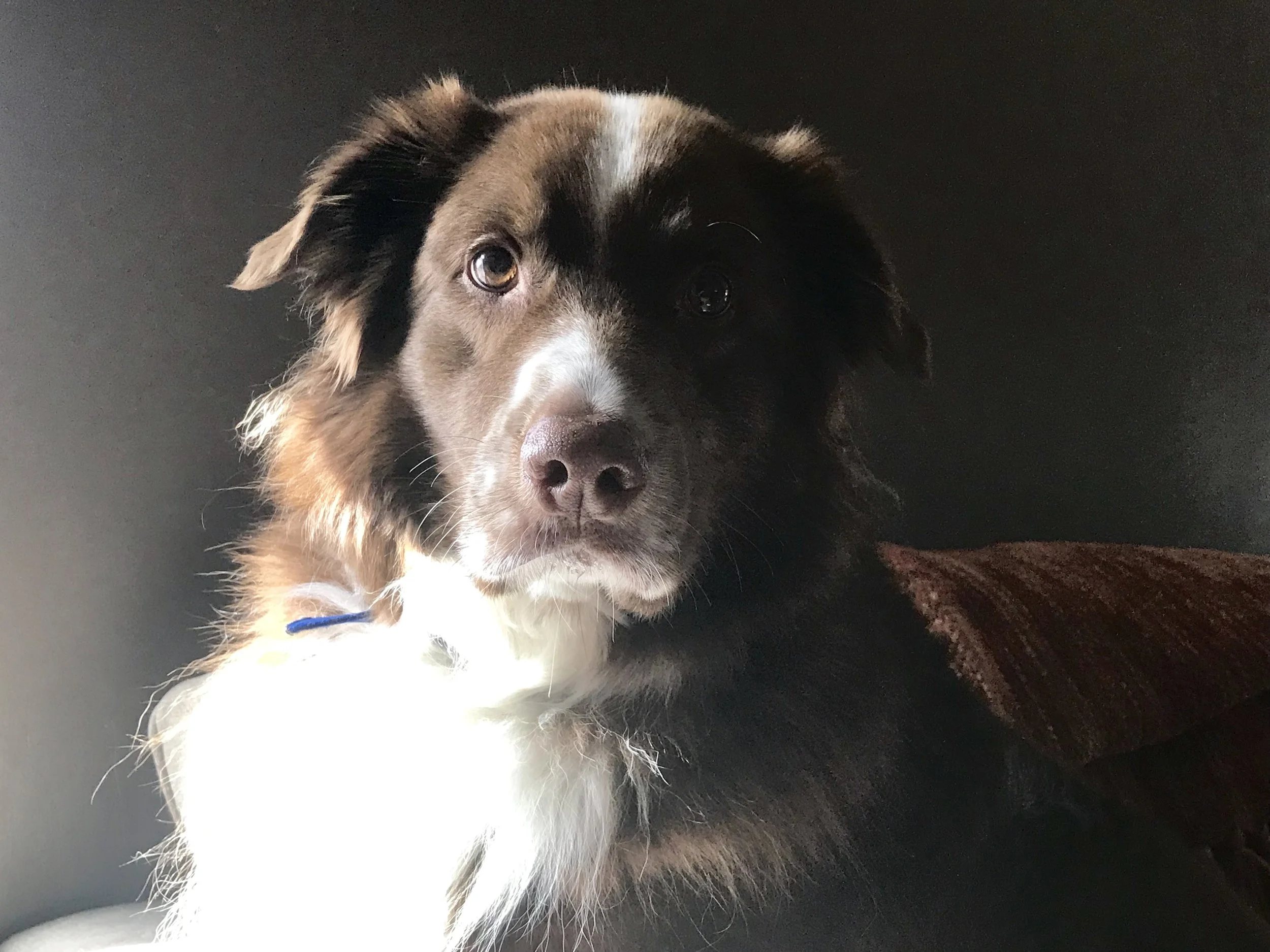 He was timid but sweet. He immediately fell in love with our Aussie, Sierra. And we immediately fell in love with him. With the exception of riding in cars, he became a happy and well rounded companion. He loved dogs, kids, babies, and everything about life. He had a deep bond with my husband Ed. He adored our grandchildren and would herd them to their delight.