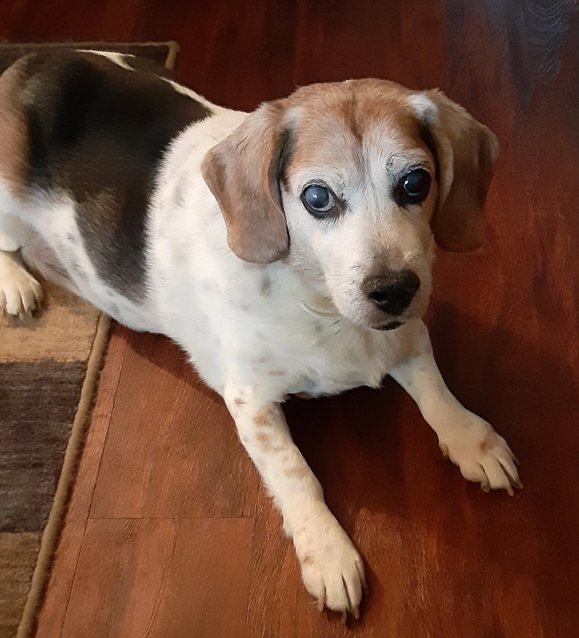 My little Phoebe, I am finding it so difficult to write this memorial because it is so hard to believe you are not here with us any longer. You might have been the smallest dog in our family, but your presence was HUGE. You were the cuddler extraordinaire, with your people and the hounds. And you sure knew how to wind up those hounds, the ever vigilant watchdog, nothing got past you . And sometimes nothing was there, but you would alert everyone and the bark/howlfest would begin. The best is when you started to howl like the bassets! Till this day, I laugh when I think of the first time you did that.