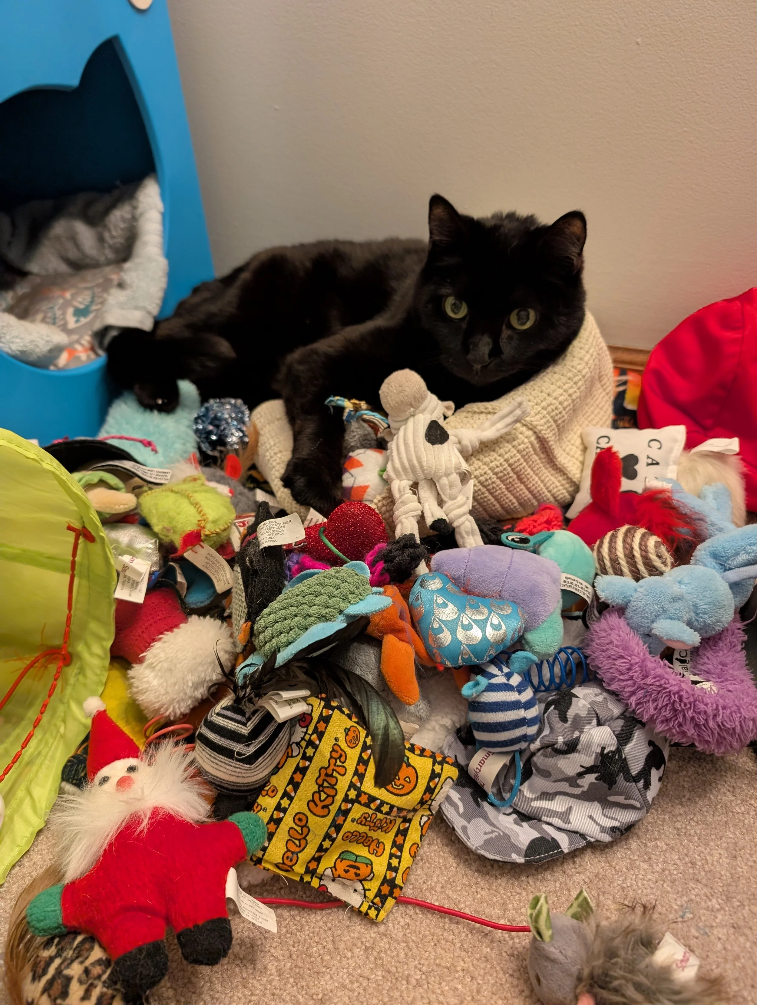 We had the joy of adopting Sami when she was 13 years young. Though our time together was only a year, we take comfort in knowing that her final year was filled with love, comfort, and plenty of pampering. Sami loved nothing more than tossing every toy out of the toy box just so she could curl up inside it herself. She adored her Churu treats and spent hours watching the deer in the backyard. Sami has left a paw-shaped hole in our hearts, but her memory will always live on, and we know we’ll see her again one day!